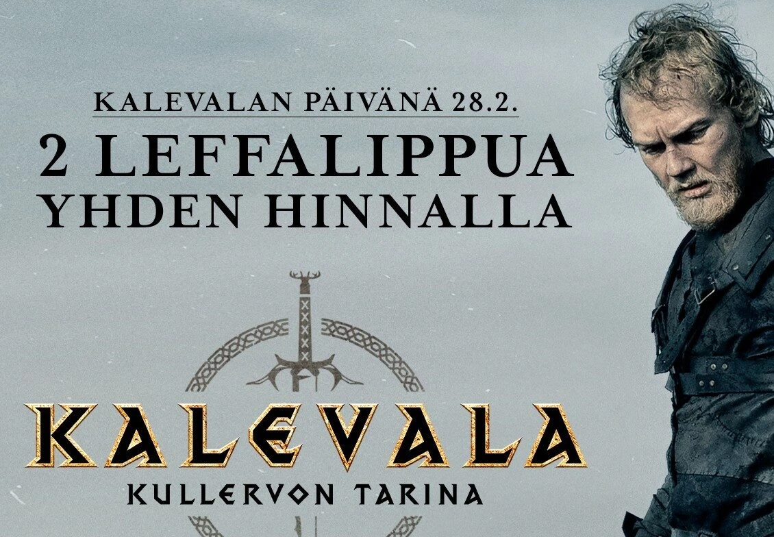 Juhli kanssamme Kalevalan päivää ja katso huikea sekä näyttävä elokuva KALEVALA: KULLERVON TARINA. Osta liput elokuvateatterin kassalla ja saa kaksi lippua yhden hinnalla!